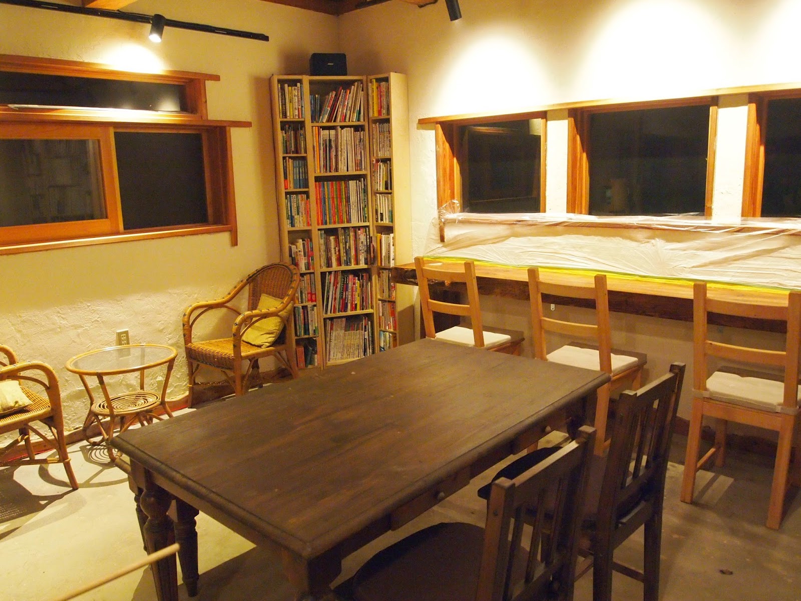 母屋で使われていたテーブルとイスもペンキを塗り直し、そして最後につくった大きなカウンターテーブル。